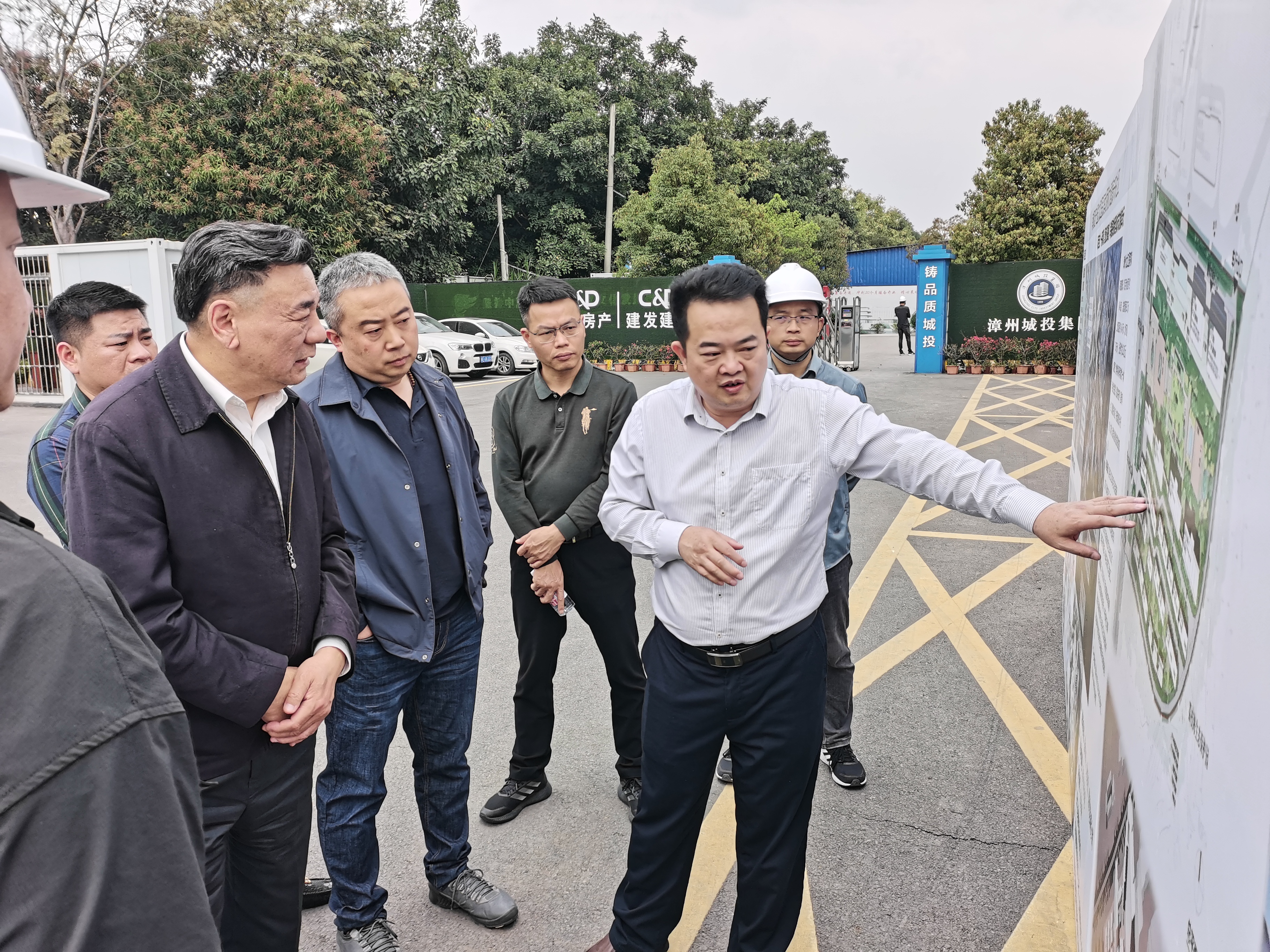 石金塔带领蔡国斌一行参观了漳州九龙江医院的诊室、病房、医生办公室等样板房,详细介绍了九龙江医院的布局规划、配套项目建设等情况。